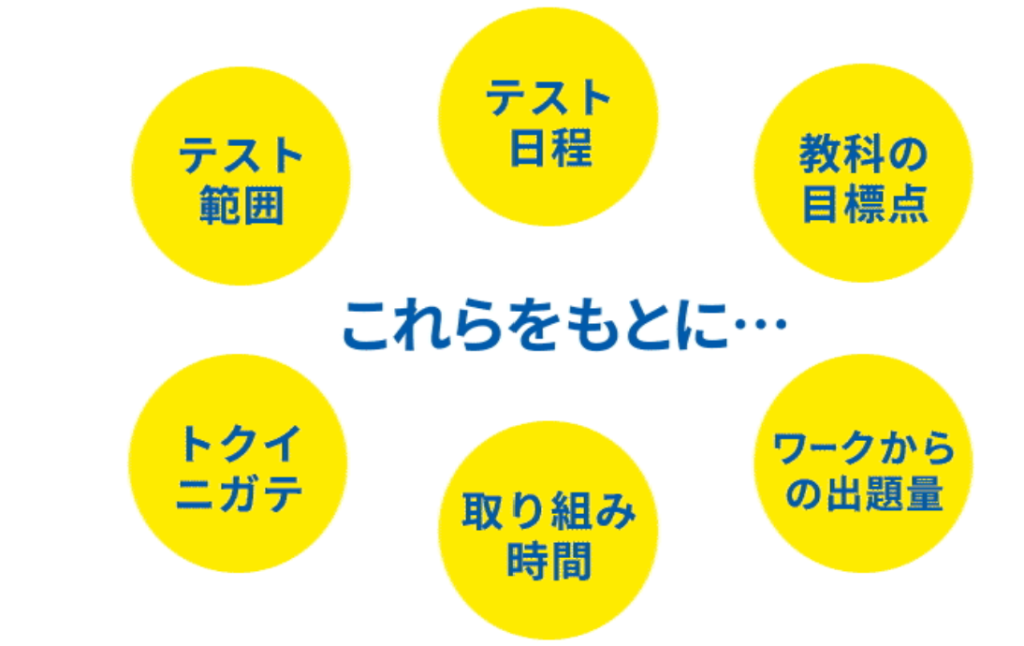 テスト対策は、予想問題や苦手攻略、記述問題のフォローなど充実のサポートが魅力です。自分専用の学習プランだからこそできる丁寧な対策で得点アップを目指しましょう!