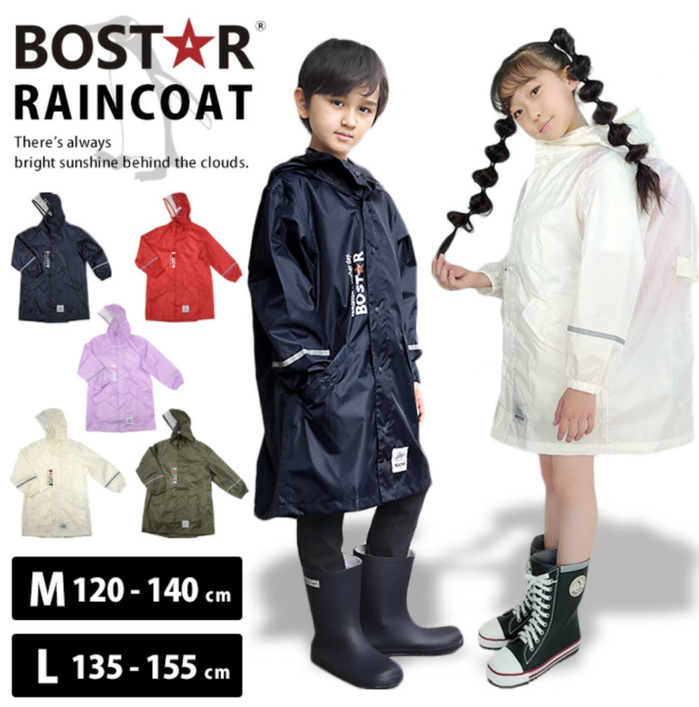 耐水圧5,000㎜以上の撥水加工で水が服にしみるのを防ぎ、雨の侵入を防ぐ工夫が随所にちりばめてあるボストアールのレインコート。おしゃれなロゴマークが目を惹くスポーティなデザインと、背中のマチ付きでランドセルを背負った上からでも羽織れる機能性にも優れています。
