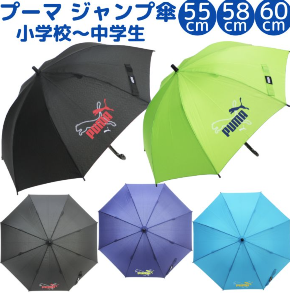 シンプルなカラーにプーマのマークがカッコイイキッズ傘。折れにくいグラスファイバーで長く使えます。大きめサイズならランドセルが濡れにくくて安心。ちょっと大人っぽくてかっこいい小学生男子におすすめの傘です。