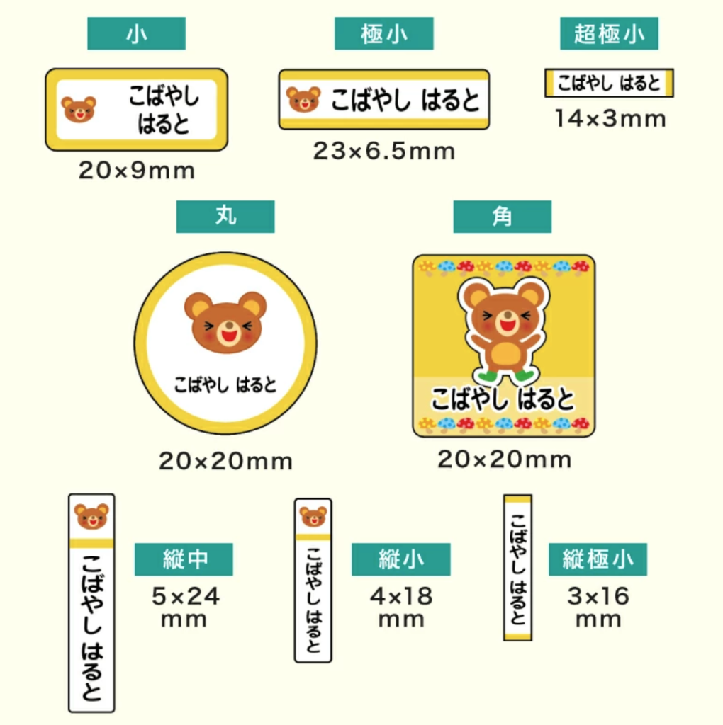 幼稚園や小学校では洋服や持ち物など様々なものに名前を書く必要があります。鉛筆など細いものや、水筒、シャツなど大きさも様々。名前シールは様々な大きさがセットになっているものが多く、貼るものに合わせたサイズを選んで貼ることができます。貼りたいもののサイズが揃っているか確認しましょう。