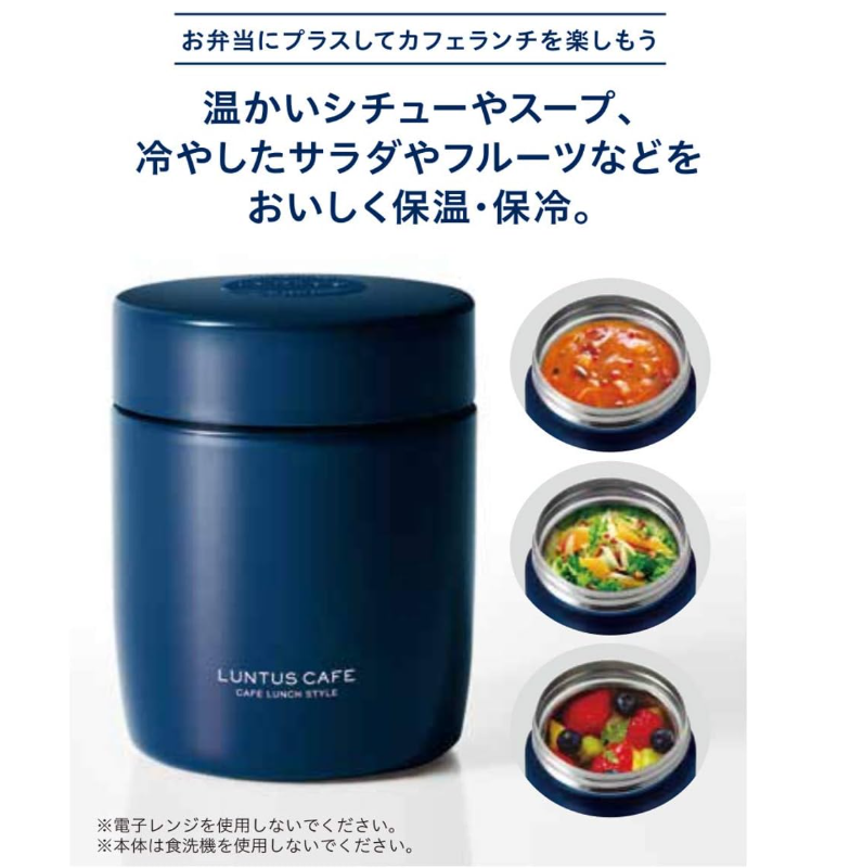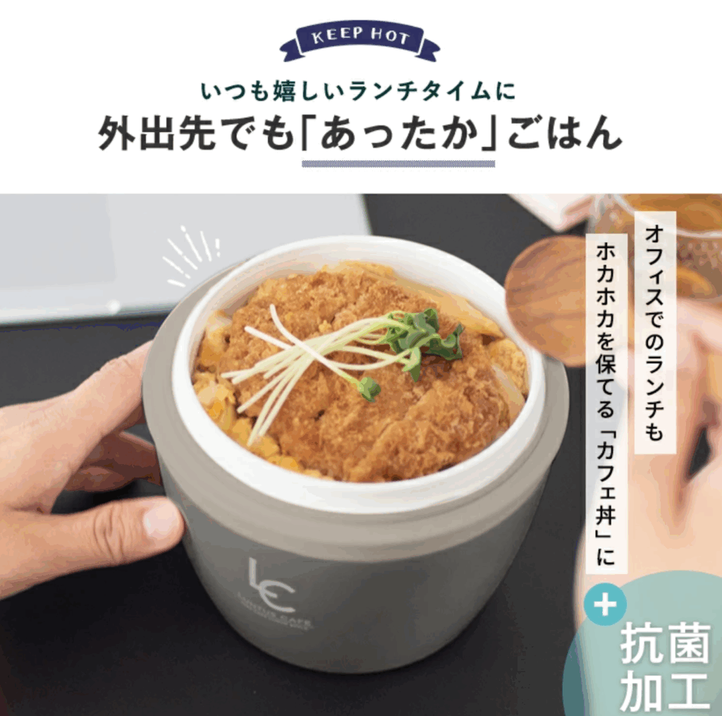 カレーやどんぶりなど温かいまま持ち運べるカフェ丼ランチ。熱々のまま冷まさずに入れられるので時短になりますね。量もたっぷり入るので男子高校生にもおすすめです。夏場は冷たい麵なども入れられるのでお弁当のレシピも広がります。