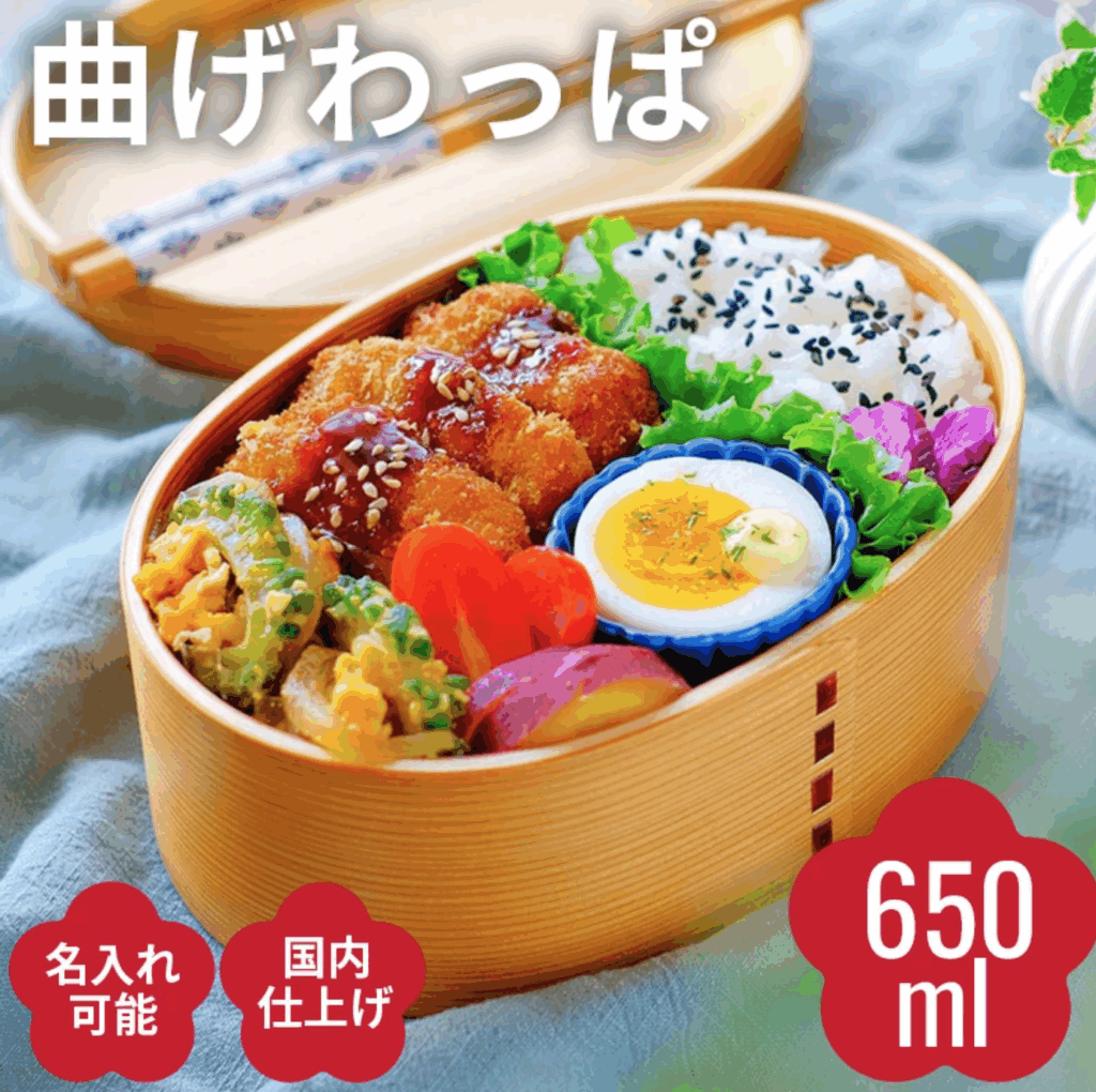 最近人気の魅せ弁の強い味方の曲げわっぱ。伝統工芸品の曲げわっぱがより使いやすく機能的になりました。仕切り板やウレタンコーティングで使いやすくお手入れも簡単。ご飯の湿気を適度に吸ってくれる自然の調湿作用でふっくらとしたご飯が続きます。軽くて持ち運びも楽なのもうれしいですね。