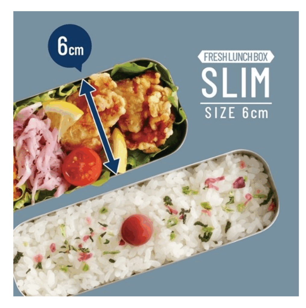 幅6㎝ととってもスリムなお弁当箱。容量はしっかりあるのにスリムだから、カバンの隙間にスッキリと入ります。食べ終わったら1段にして持ち帰れるのでさらにコンパクトに。色移りしにくく丈夫なステンレス製でお手入れも簡単です。