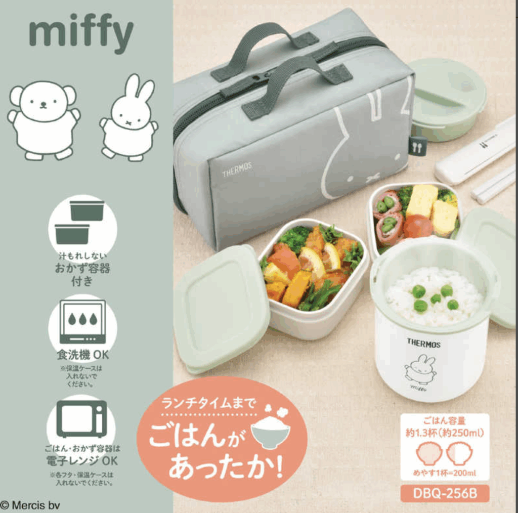 ご飯を温かい状態で持ち運べるサーモスの保温弁当箱。優しいカラーのミッフィーデザインでとってもかわいいですね。ご飯が温かいので硬くならずにおいしく食べられます。おかず容器も汁漏れしにくい形状で食洗器も使用できてお手入れも簡単です。