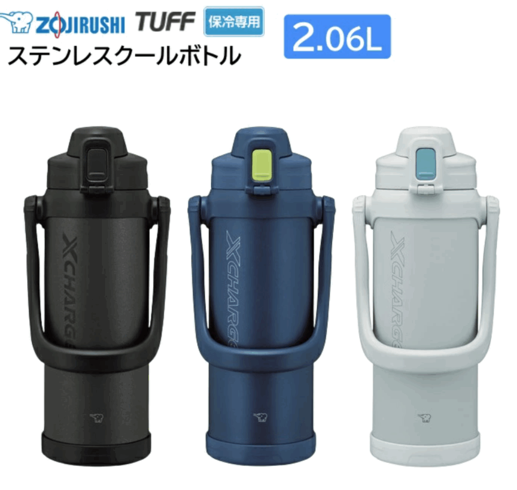 象印の大容量ステンレスクールボトルは、2Lの大容量で部活やスポーツをやっている中学生男子におすすめ。ハンドル付きで握りやすく大容量で重くなった水筒も運びやすいのが良いですね。スポーツドリンクを入れてもOKなので、真夏の部活でも大活躍します。