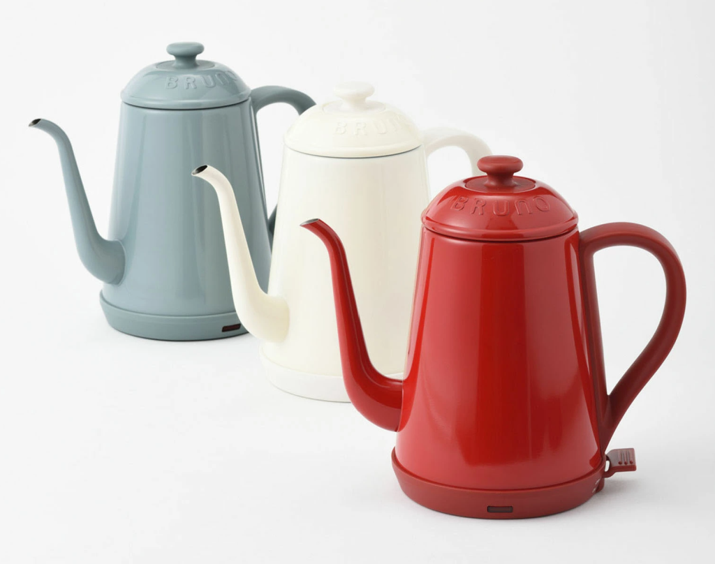 かわいいフォルムとカラーで置いておくだけでインテリアになるBRUNOの電気ケトル。スリムなのに大容量、注ぎやすい形状、自動オフ機能など使いやすさにもこだわっています。