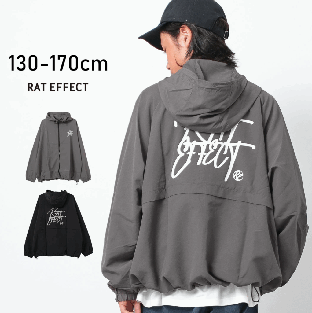 ジュニアサイズのファッションが豊富なラットエフェクト。普段使いでコーデしやすいストリートスタイルのウインドブレーカー。サッと羽織れてかっこいいデザインが男子中学生にぴったりです。ジュニアサイズなので大人サイズは合わないという人にもおすすめ。