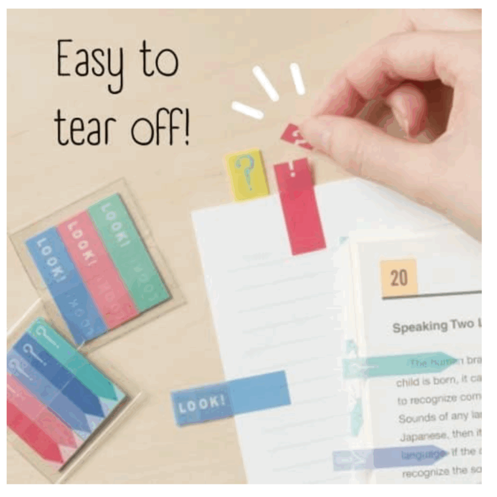 こちらは、思わず「おぉ!」ってなっちゃうアイデア付箋!覚えたい部分や大切な部分に貼っておいて、完了したら付箋のミシン目に沿ってピリッと破ると「LOOK!」→「OK!」に変化する優れもの。ディズニーキャラクターなどのタイプもあるので、楽しく勉強を進めたい人におすすめですよ!