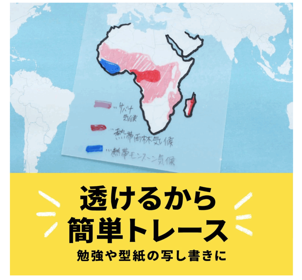 図などを書き写して書き込みしやすい半透明の付箋。教科書などの上から貼っても文字を隠さず書き込みできるので大切な部分がわかりやすいですね。素早く地図や図形を書き写してノートをまとめるのにとっても便利です。