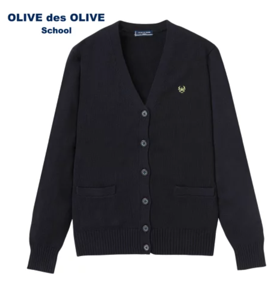自宅で気軽に洗えて毛玉ができにくい加工を施してあるオリーブデオリーブのスクールカーディガン。ワンポイントの刺繍がかわいいデザインで、スッキリと着られるデザイン。カラーバリエーションが豊富で、制服とのコーデを楽しめますね。