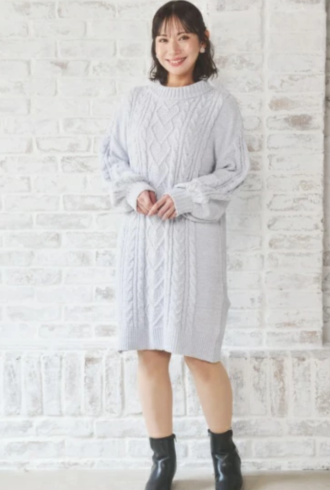 一枚でサマになるスイートなニットワンピース。パールビーズやラメ糸で変化がついて体型カバーにも。もちもちな肌触りと、ケーブル模様のかわいらしいデザインでデイリーユースにもデートにも活躍する一枚です。