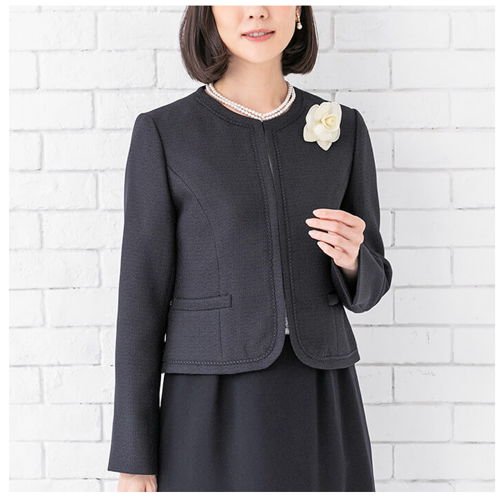 ネイビーや黒のセレモニースーツにアクセサリーやコサージュなどで華やかさをプラスするのがおすすめです。