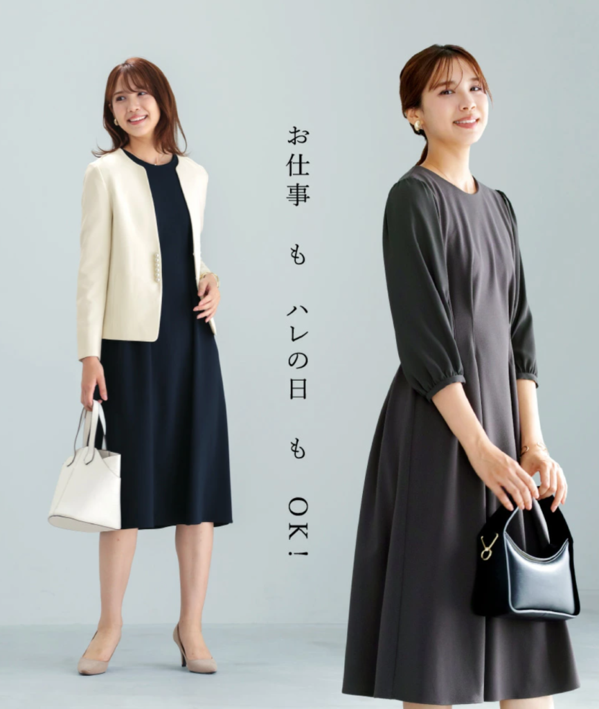 ぐいっと伸びるしなやかなハイストレッチジョーゼット素材で動きやすいワンピース。ラインがキレイでスタイルアップもできてシワにもなりにくい美ラインのワンピース。手洗い可能でおうち洗い可能なのもうれしいポイントですね。同シリーズのジャケットとも相性が良いので、オフィス・フォーマルなど様々なシーンで活躍します。