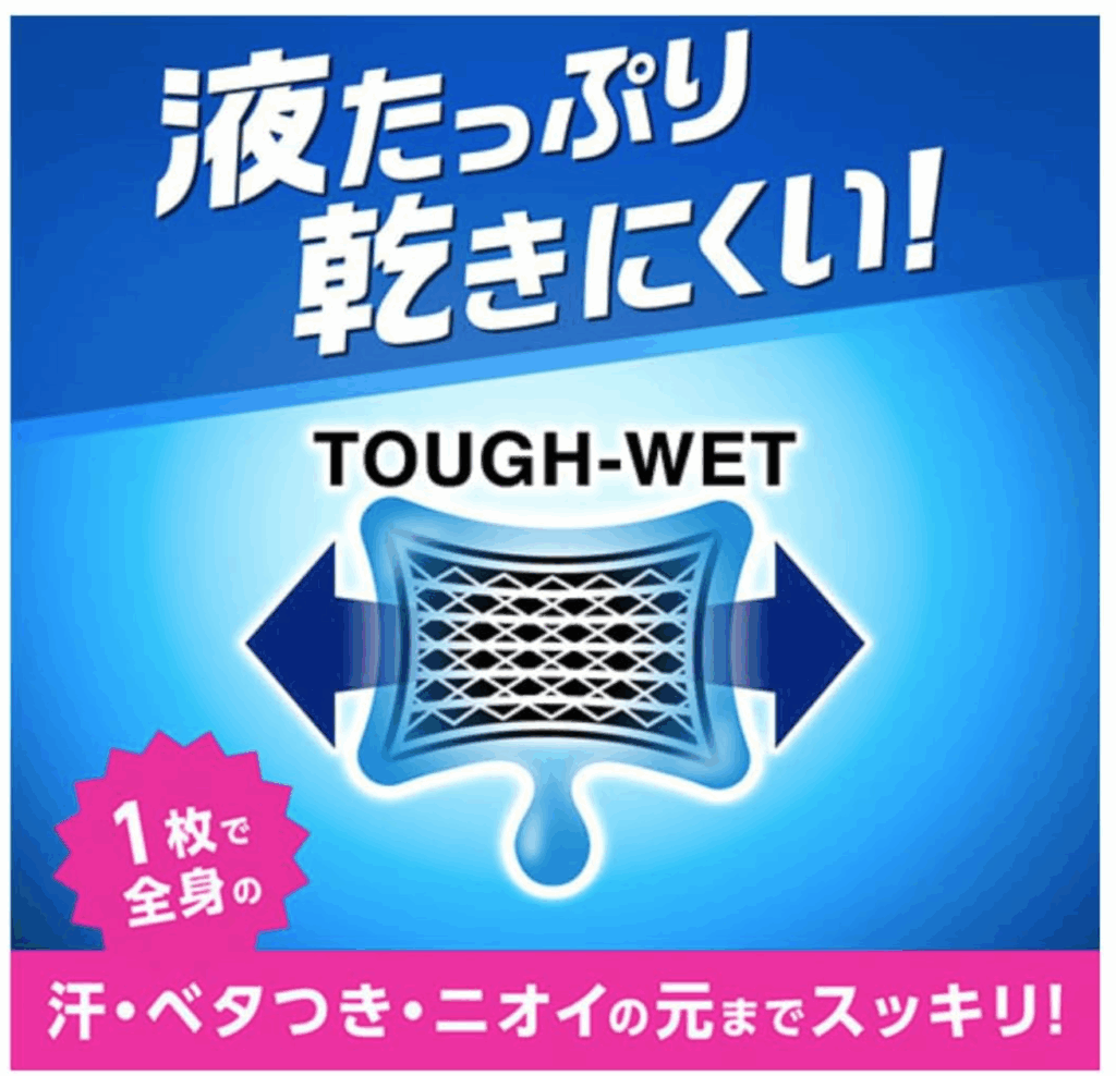 メントール配合で使用後の爽快感が得られ、厚手で大判のサイズだから全身の汗をしっかりと拭きとれます。液がたっぷりと含まれていて乾きにくく使いやすい設計です。爽やかで清涼感のある香りが汗のいやなにおいを抑えてくれます。
