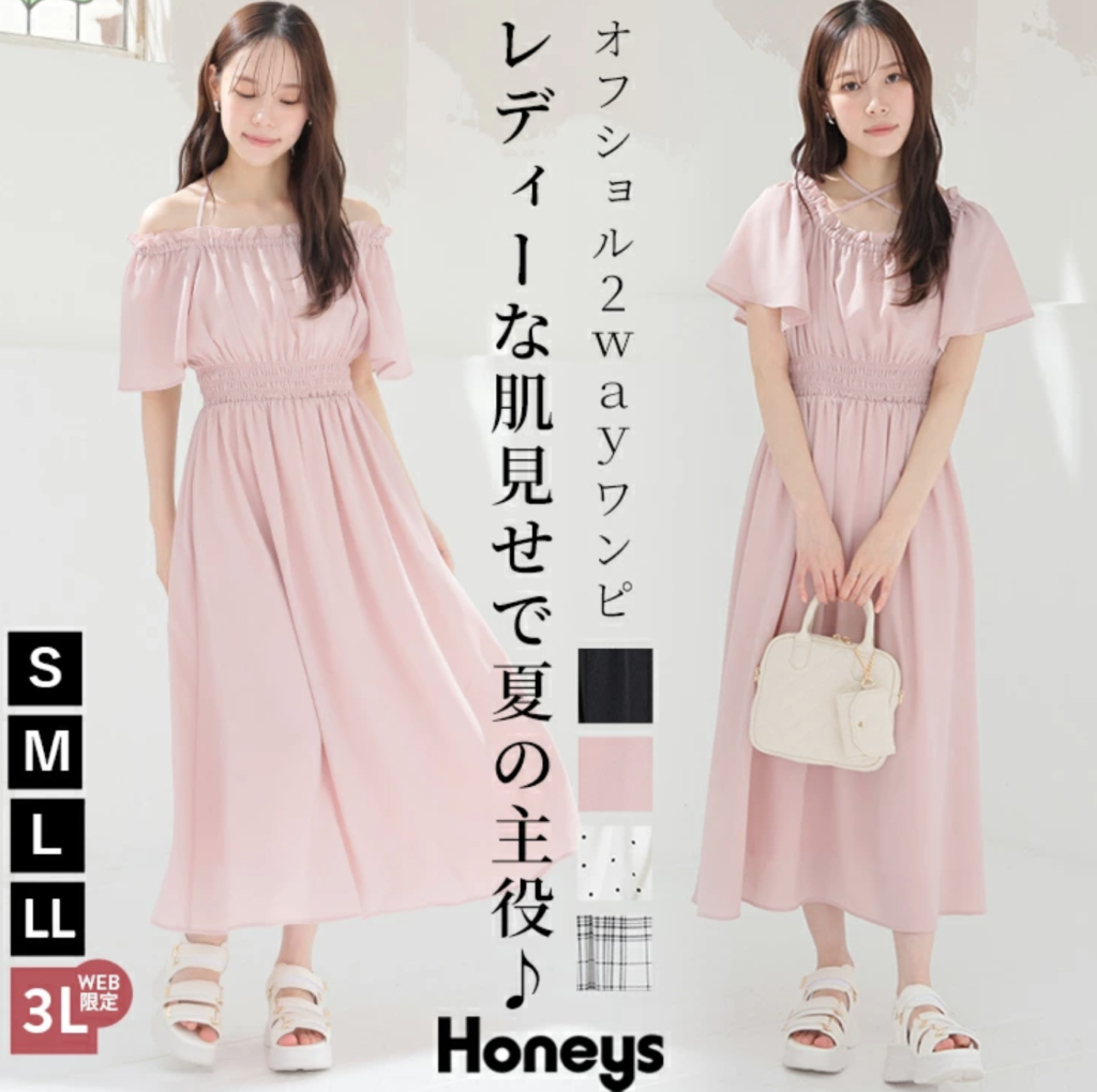 - Honeys 2way スクエアネック オフショルダーワンピース